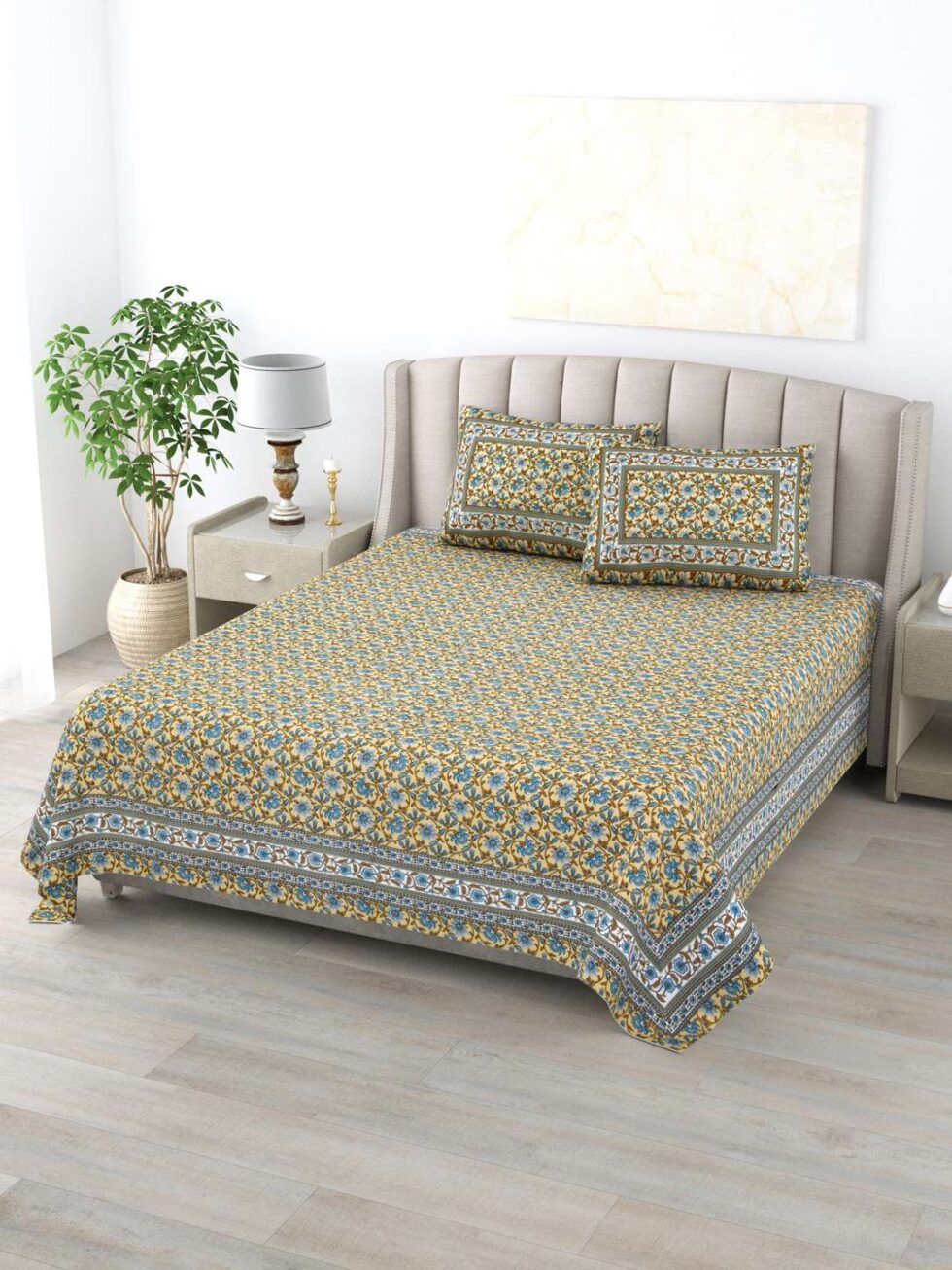 100% Pure Cotton Traditional Printed Bedsheet for Double Bed King Size Bedsheet with 2 Pillow Covers