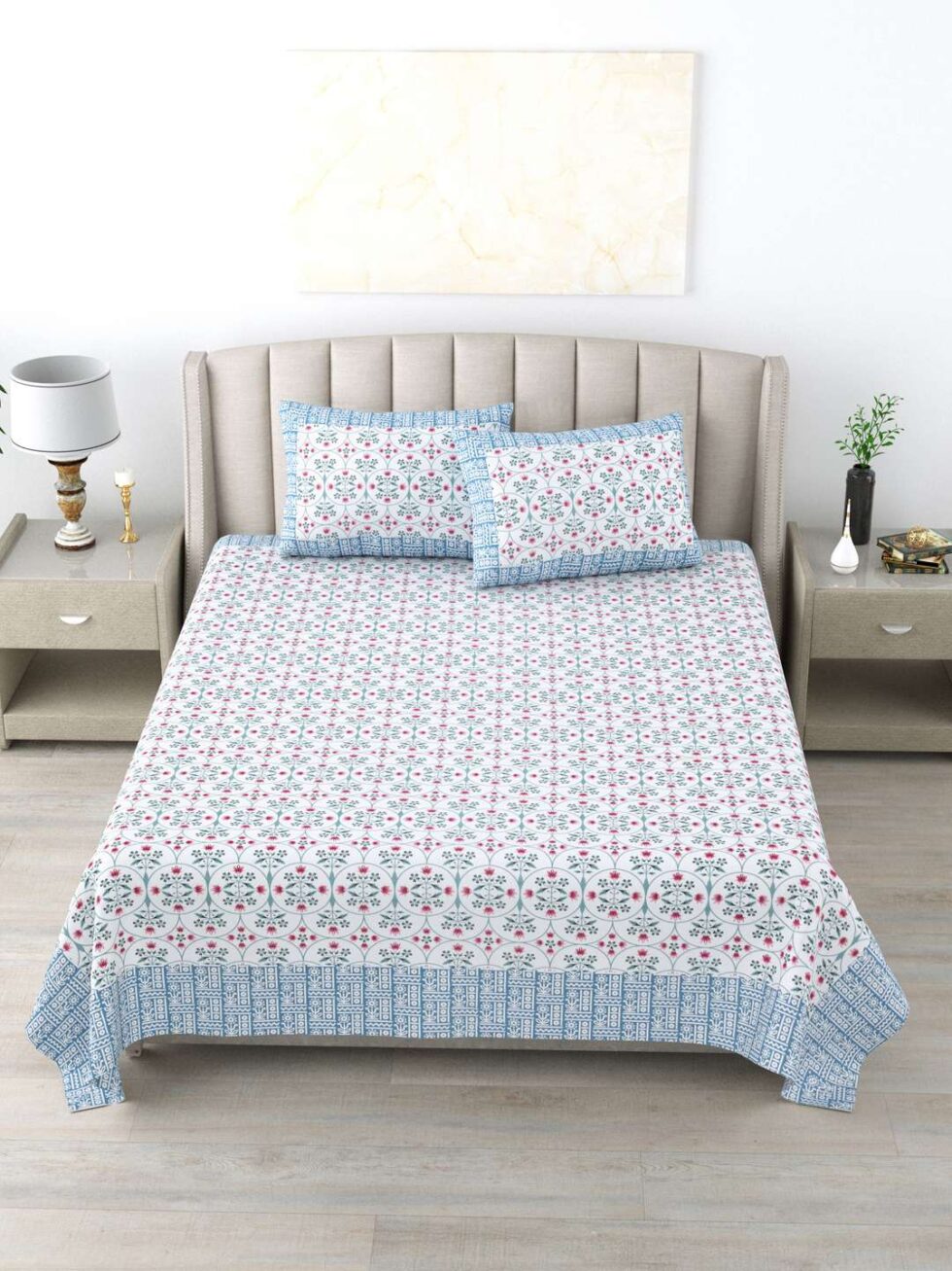 100% Pure Cotton Traditional Printed Bedsheet for Double Bed King Size Bedsheet with 2 Pillow Covers