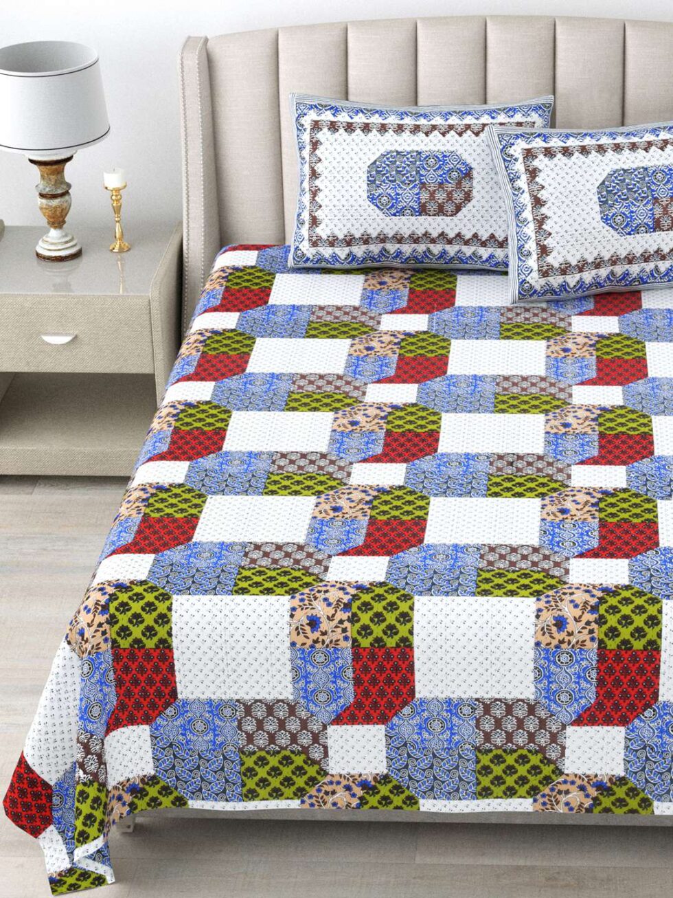 100% Pure Cotton Traditional Printed Bedsheet for Double Bed King Size Bedsheet with 2 Pillow Covers