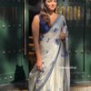 Designer Pixcel Crush saree with elegant Katdana, pearl work, plain blouse, graceful look, perfect for parties and special occasions.
